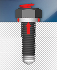 ■ HEICO-LOCK 楔入式鎖緊墊圈之間的楔型角(α)比螺栓的螺紋螺距